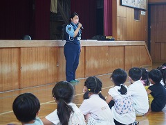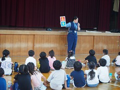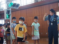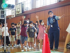 津島警察署から交通課の方が、低学年と高学年に分けて交通安全についていろいろと教えてくださいました。