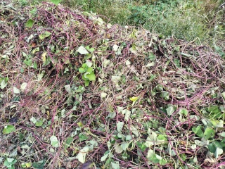 になっていましたが、そこからもっと伸びて蔓が蔓延(はびこ)っていました。 (※はびこるという言葉は「蔓(つる)が延(の)びる」という字を書くのですね。まさにサツマイモの様子そのものです。)