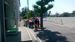 朝、登校し終わるとすぐに体育館渡り廊下に1・2年生の子が出てきます。