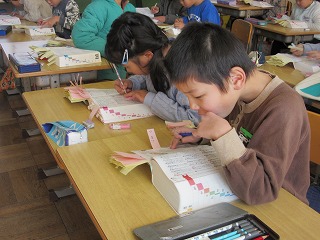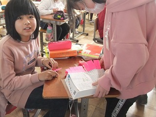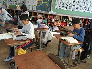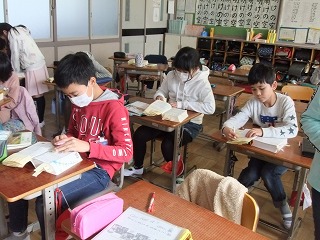 5の1では、放課になってもたくさんの子が辞書引きをしていました。