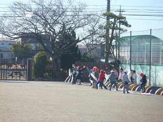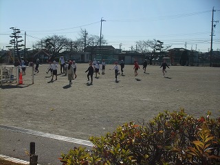 運動場に歓声が響き、走り回って遊ぶ1年生の姿がありました。