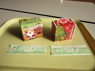 給食も12月最後。かわいい箱の中に・・・。