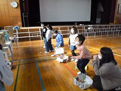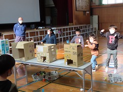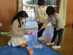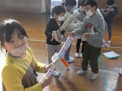 2年生のみんながおもちゃを考えて、1年生や正則保育園の年長さんに遊んでもらうという生活科の一環です。残念ながら、ここのところコロナ禍のため年長さんには参加してもらっていません。本校の1年生のみ、参加してもらいました。