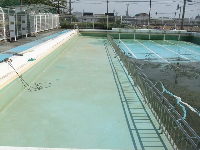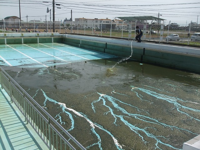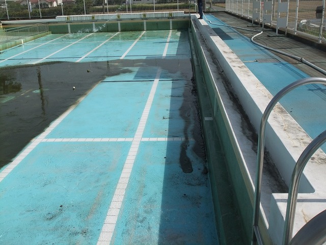 今回は、プールのオーバーフロー、消火栓を使って、底にたまったヘドロを流し切ることを目標にしました。