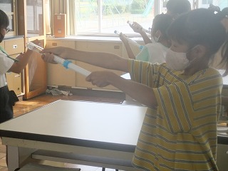 4年生は、近ごろ、理科で『空気でっぽう』を勉強しています。