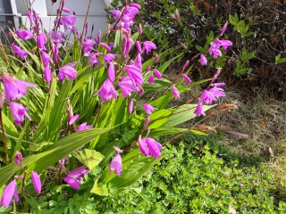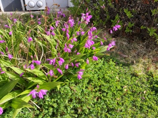 正則小学校の職員室の前(南側)に、花が咲いています。
