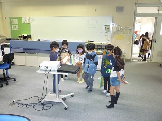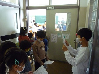 2年生が1年生に校長室の説明をしていました。