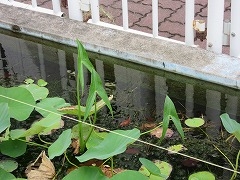 実は、西昇降口近くの蓮が広がっている池の中に、この沢瀉という植物があるのですが、下の写真では分かりませんよね。