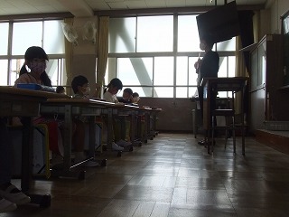 いい天気になりました。子どもたちには半そでの子が目立ってきました。日当たりのいいところは汗ばむほど。子どもたちは朝からどことなく緊張気味だったのでは?なんとなくいつもとちがうような・・・。