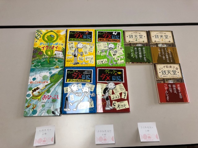 いつも読み聞かせでお世話になっている、山口先生と栖村先生から、図書の寄贈をいただきました。