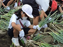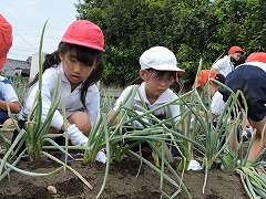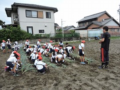 昨日3年生がねぎ植え体験をしました。ねぎは植え替えることで病気を防いだり成長を促したりできるそうです。雨のために延期されたネギ植えでしたので子どもたちは意欲的に取り組みました。