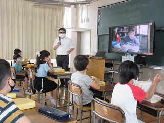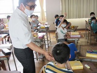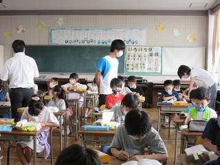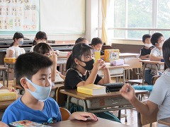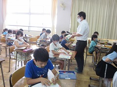 今年1月30日に体育館で昨年の2~6年生に辞書引き学習の手ほどきをしてくださった、中部大学の深谷先生が、昨年度1年生だった今年度2年生のみなさんのために来てくださいました。