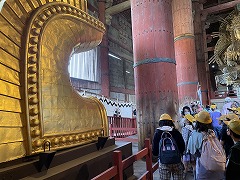 いよいよ世界最大の木造建築である大仏殿の中に入ります。ただ、最初に作られた当時は今よりももっと大きかったなんて、その技術の高さにびっくりしてしまいますね。