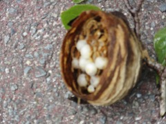今日の朝、登校した1年生の子が職員室前の植木の枝にカマキリの卵があると教えてくれました。ところが、見てみるとそれはカマキリの卵ではなく、握りこぶし大の「