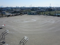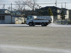 冬季は乾燥と伊吹おろしで運動場の砂が飛ばされやすくなります。すると、大きな石がむき出しになって、ころんだときにけがをしやすくなり、危険です。また、雪が積もるとなかなか融けず、融けてもぬかるんでいつまでも使えなくなってしまいます。
