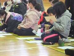 2/25の2時間目の放課に、新1年生のお宅へ持っていくお手紙について打合せが行われました。どの子も真剣です。まちがいがあってはいけません。