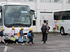 今日は2年生の社会見学の日です。 曇り空で少し肌寒い中、2年生のみんなは名古屋港水族館に向かって出発しました。どんな魚を見てくるでしょうか。
