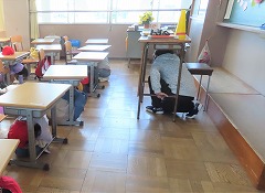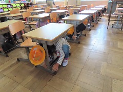 地震が起きたらまず自分の頭を守る、そして体を守る行動をとります。