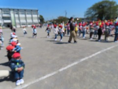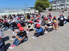 ゆれが収まったら、先生の指示に従って運動場に移動します。今回の訓練ではみんなとても静かに行動し、300人を超える児童全員が5分以内に避難することができました。