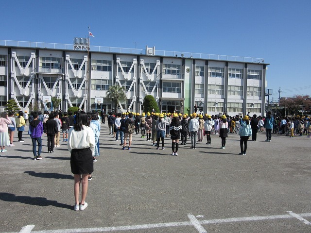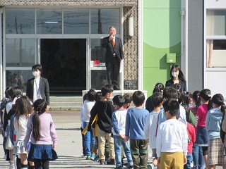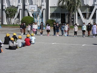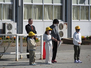 きょうは初めての一斉下校。スムーズに下校できるように、また間隔をとって並べることができるように、通学団の並ぶ位置も変わりました。