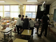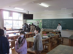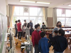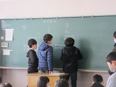 各教室で、担当の先生が見守る中、通学班で集まって並び方や来年度の班長など、子どもたちが相談しています。