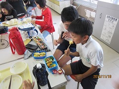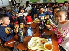 5・6年で『弁当の日』を開催しました。4年生は、給食をもって来年の下見です。