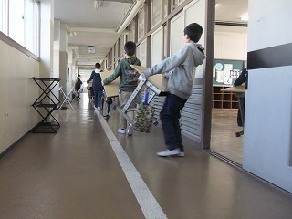 前日のきょうの5時間目に、毎年机といすを持って移動します。