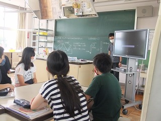 理科室では、教師による酸素の燃焼実験に子どもたちが歓声を上げていました。