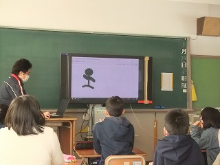 5年1組では、パソコンでパラパラマンガのような作品作りを行いました。きょうはその発表会におじゃましました。