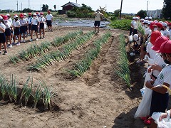 3年生が、あま市美和地区の特産 ネギの苗植体験をさせていただきました。