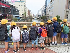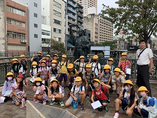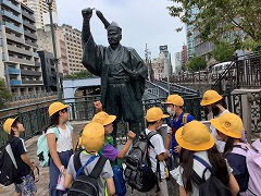 3年生はまず堀川を散策し、福島正則像を見てきました。