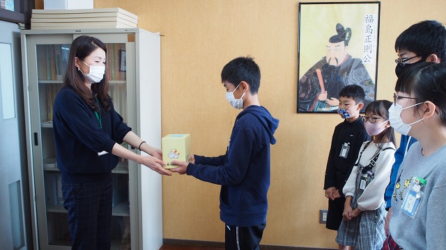 きょうは会長が代表して手わたしてくれました。みなさんも、知っておいてくださいね!