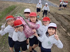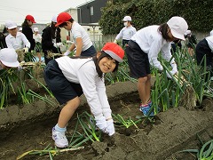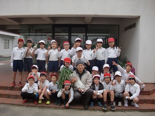 3年生は、毎年、美和地区の特産である、ねぎの苗植えと収穫を体験させていただいています。