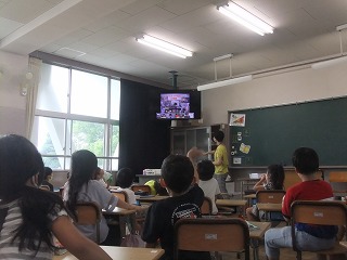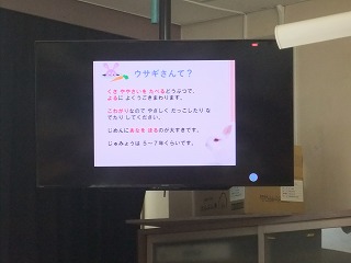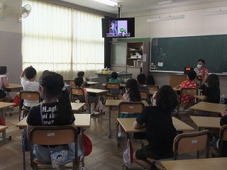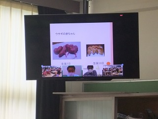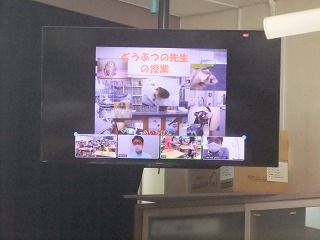 1年生では、5時間目にリモートによる動物ふれあい教室を行いました。