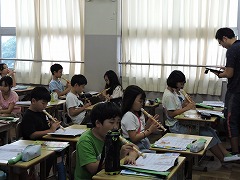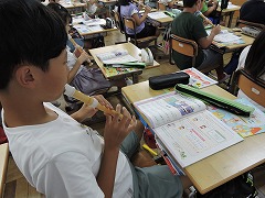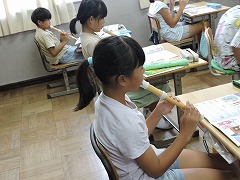 4年生が音楽でリコーダーに取り組んでいました。小学校で使用するソプラノリコーダーはジャーマン式といって、低いドから高いレまでは指の動かし方は単純です(シから高いドの時は少し複雑ですが)。ただ、楽譜にシャープやフラットなどがつくとどうしても複雑な動かし方になってしまいみんな苦労します。