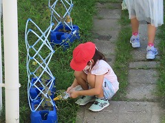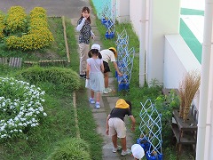 2年生が生活科でトマトなどの観察をしていました.自分たちで育てているトマトの世話をするとともに、その他の植物なども含めて観察します。