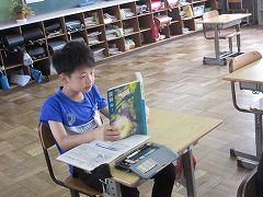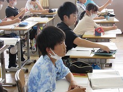 5年生が国語で長文の読み取りをしていました。長い文章はいくつかのまとまりに分けると意味がとりやすくなります。段落ごとに何が書いてあるのか話し合っていました。