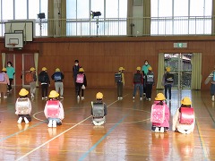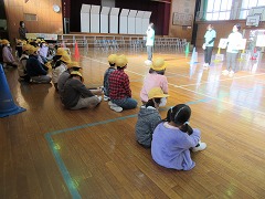 大声を出して逃げること、ランドセルなど持ち物は放り出して逃げること、大人に話すことなど、不審者への対応を練習しました。