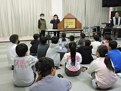 5年生が、名古屋から「堀川紙芝居」のみなさんに来ていただき、福島正則にまつわるいろいろな話について学びました。