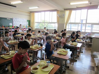 距離をとってならぶ、アルコール消毒など、今までと一番違うのは給食のときなのかもしれません。