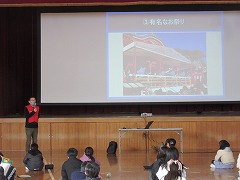 先日、4年生が社会の一環で、あま市のことについて学ぶ出前授業を行いました。講師の先生をお招きし、あま市について詳しく教えていただきました。