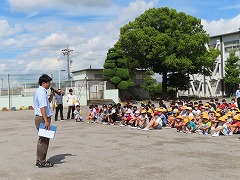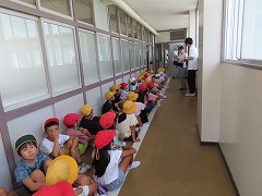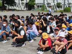 第1回の避難訓練を踏まえて、先生の指示で運動場に避難しました。