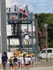 短時間に階段を降りたり上ったりと大変ですが、みんな静かに避難できました。