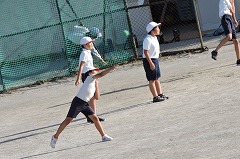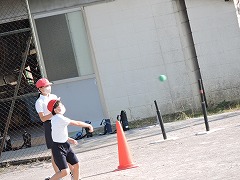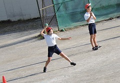 大谷選手が日本中の小学校にグローブを寄付するというニュースがありましたが、この日は5年生が体育でキャッチボールに取り組んでいました。軽いソフトボールを使っているのでグローブはありませんが、適度に距離をとってボールを投げ合います。