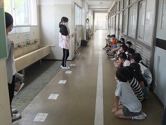 きょうは『すこやか集会』のリハーサルです。6年生のみなさんが、考えに考えた4つのゲームを16あるすこやか班の1~5年生に楽しんでもらうというものです。
