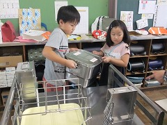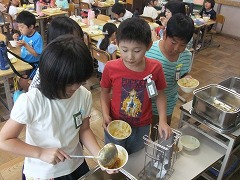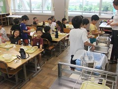 正則小は予定通りに給食が配送されましたが、他の学校では20分近く遅れたところもあったとか。給食当番の子どもたちも見守る先生たちも、あれ?あれ?と首をかしげつつ確認しながら、進めていました。事前に聞いてはいても実際にやってみると・・・。新しいことは、やはりだれにとっても大変ですね。