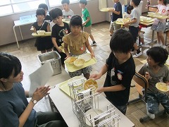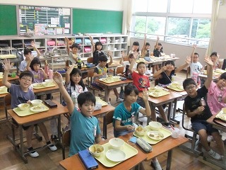 献立表には載ってない!?それもそのはず、通常8月の出校日に給食はありません。今回は、9月から稼働する新しい給食センターのお試し給食なのです。ですから、給食費も給食センターが負担しています。つまり、タダです。