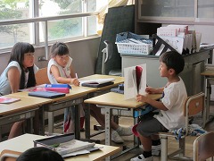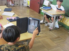 2年生が、生活科のまとめを発表する様子を、タブレットで録画していました。