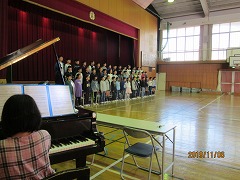 さて、きょうは校内合唱発表会。子どもたち同士で見るのはきょうだけです。発表会当日は、自分たちの出番だけ体育館に行って発表します。