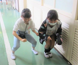 放課になると、みんな楽しく遊んだりして過ごすのですが、ある日の放課に2人が不思議な格好をしていました。